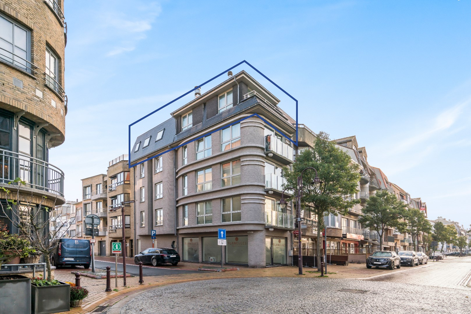 Gelegen op de hoek van de Kerkstraat en Oostlaan bevindt zich dit zuid georiënteerd appartement met twee slaapkamers. Dankzij zijn ligging op een hoek baadt de woonkamer in het licht, uitgevend op een terrasje waar u kan genieten van een open zicht doorheen de Kerkstraat. De keuken is volledig ingericht en voorzien van o.a. een vaatwasser en combi-oven. Er is een apart toilet en een handige berging met aansluiting voor een vaatwasser. Achteraan bevinden zich de twee slaapkamers, één voorzien van een dubbel bed en de ander van een stapelbed. De badkamer is uitgerust met een moderne douche en een hedendaags badkamermeubel.
