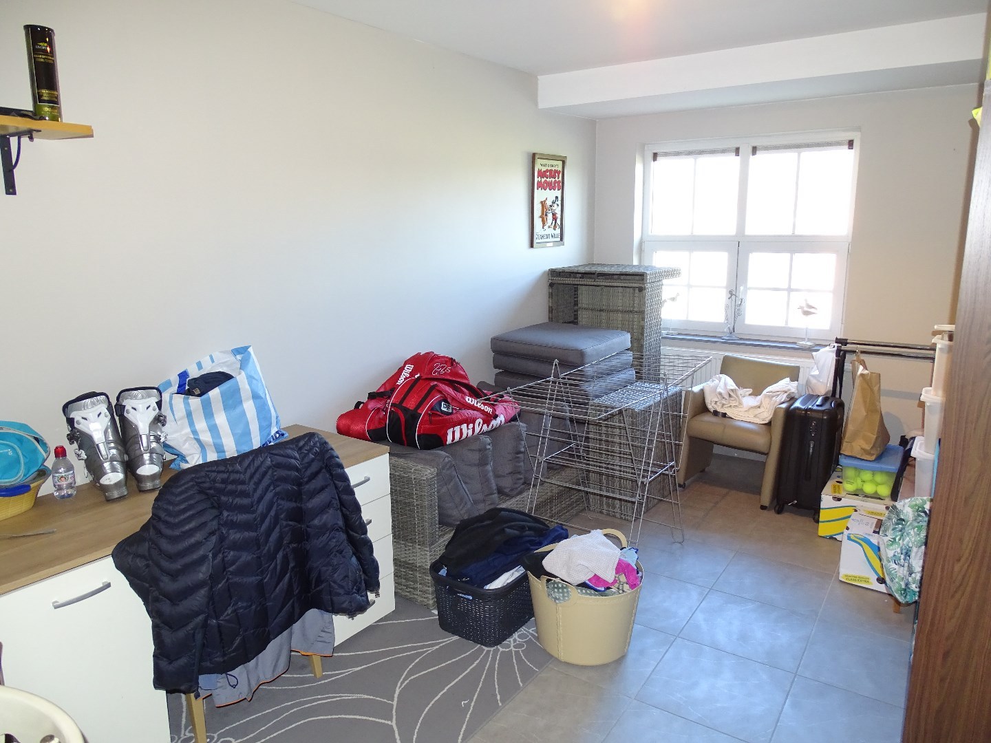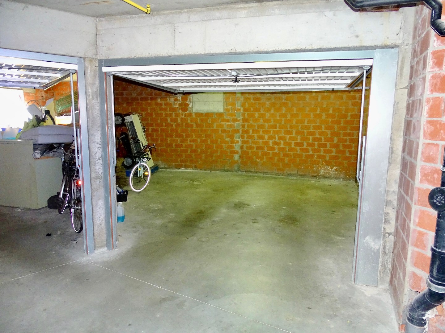 Dit zeer ruime appartement beschikt over een privé ingang. Op het gelijkvloers bevindt zich de inkomhal, een hobbykamer, een ruime berging en een garage met plaats voor twee auto's.
