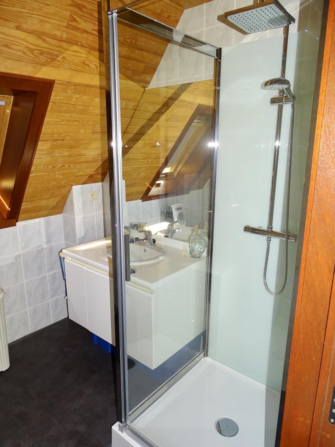 Net zoals de keuken werd ook de badkamer vernieuwd, deze werd voorzien van een moderne regendouche. Verder is een ruim apart toilet en twee bergingen waarvan één uitgerust met een combinatie was- en droogautomaat.