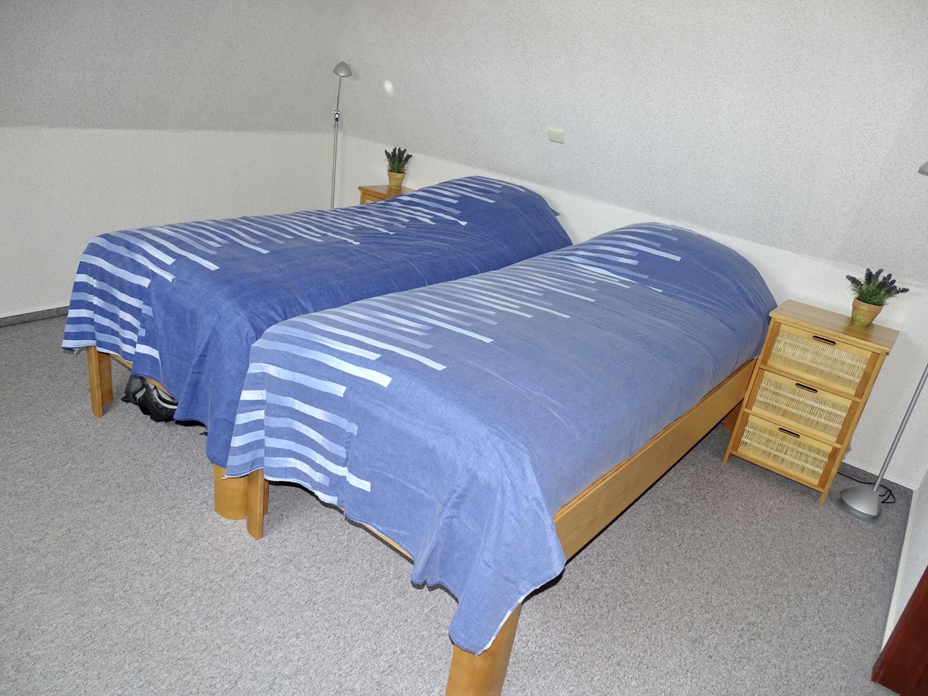 Via een binnentrap komt u uit op een ruime hal met heel wat plaats voor een grote kleerkast, ook de slaapkamer is aangenaam groot en biedt plaats voor een dubbel bed.