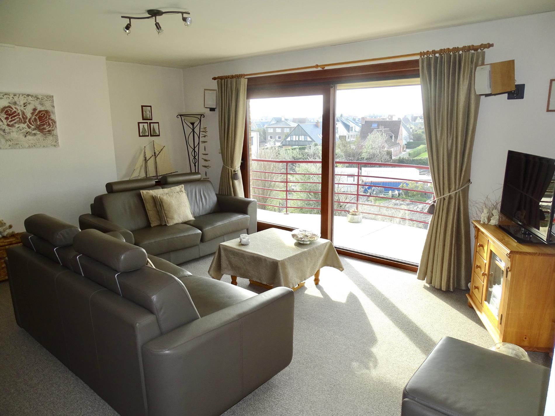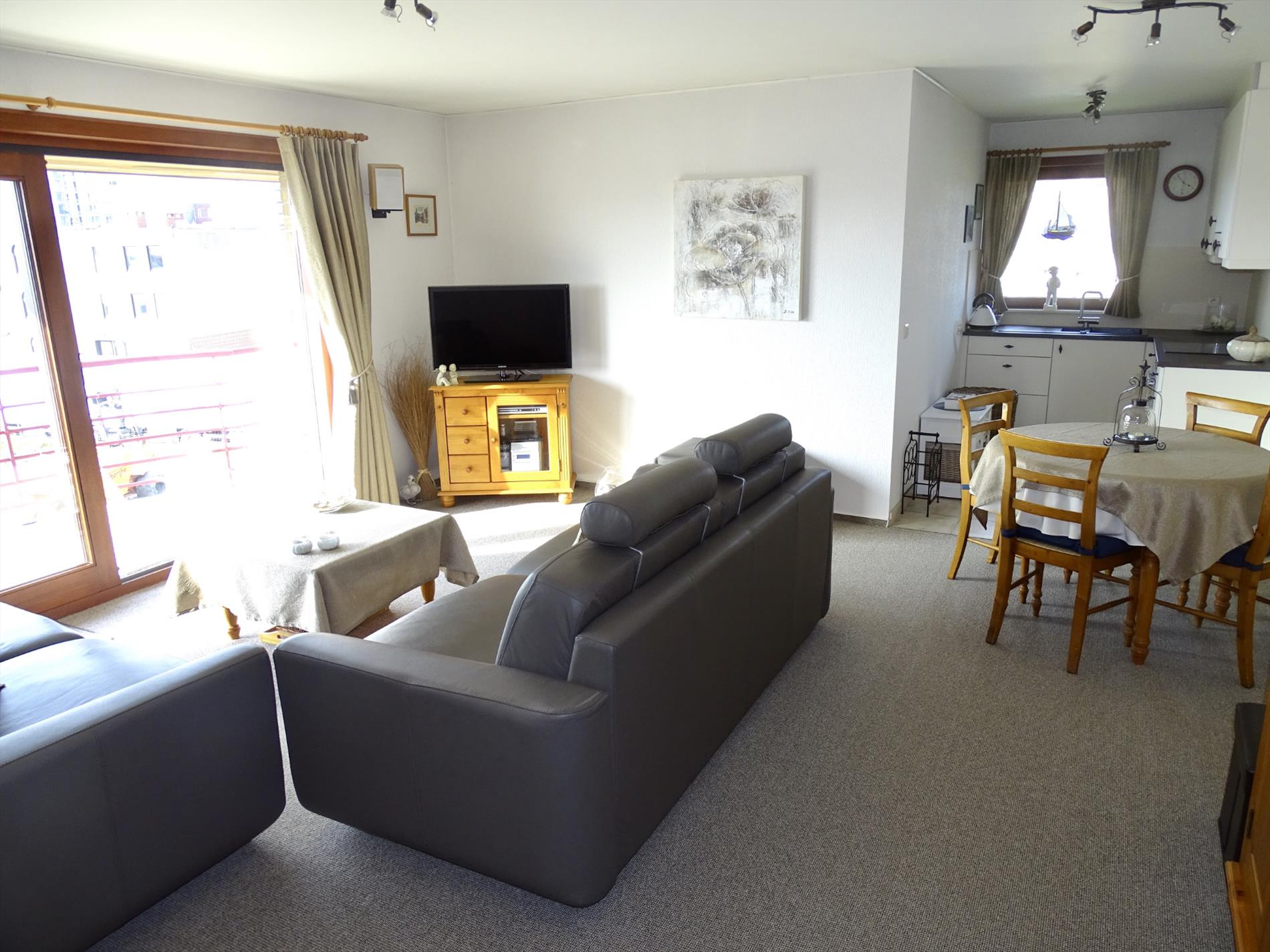 Er is een ruime woonkamer met heel wat lichtinval. In de living staan er overigens twee zeer degelijke zetelbedden waardoor men hier desgewenst met vier personen kan slapen. Aangrenzend aan de woonkamer bevindt zich een open, ingerichte en volledig vernieuwde keuken. Met o.a. aanwezigheid van volgende toestellen, een inductiekookplaat, geïntegreerde koelkast en diepvries.