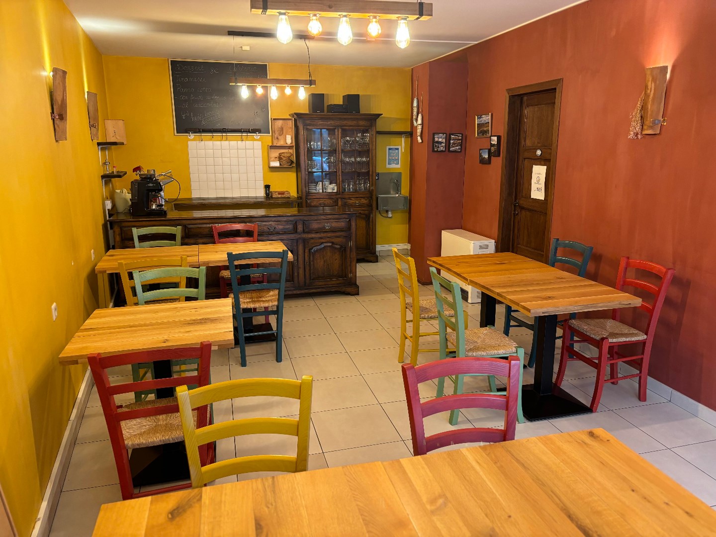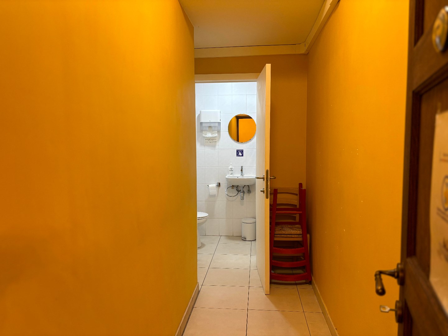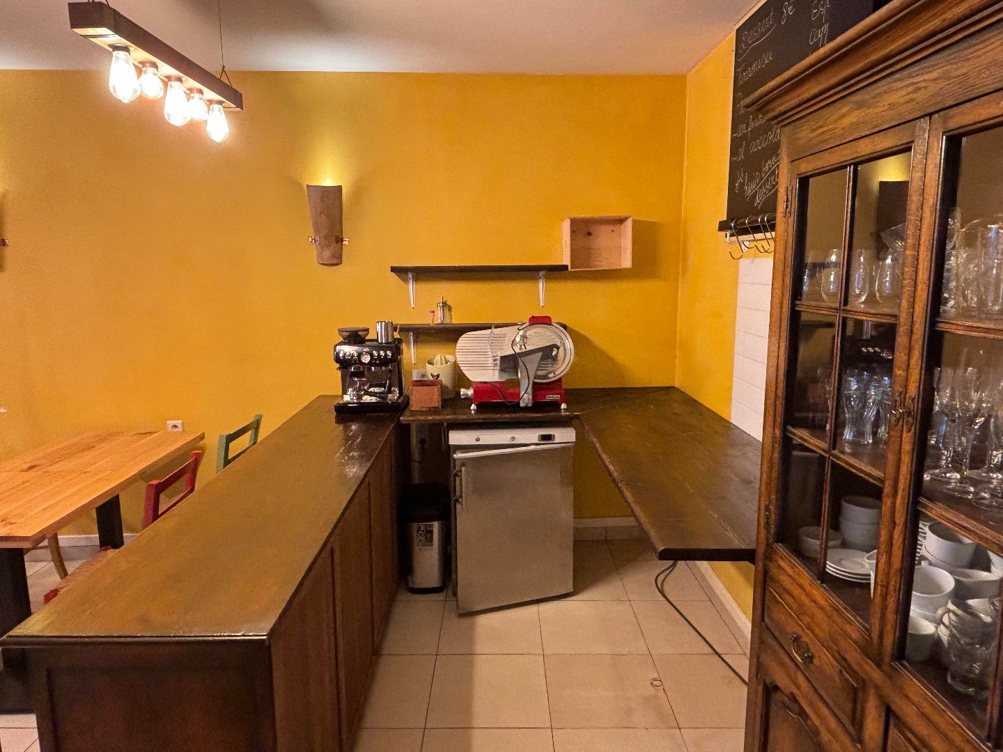 Het pand biedt naast de keukenruimte een knusse eetzaal voor een 20-tal personen en open bar.