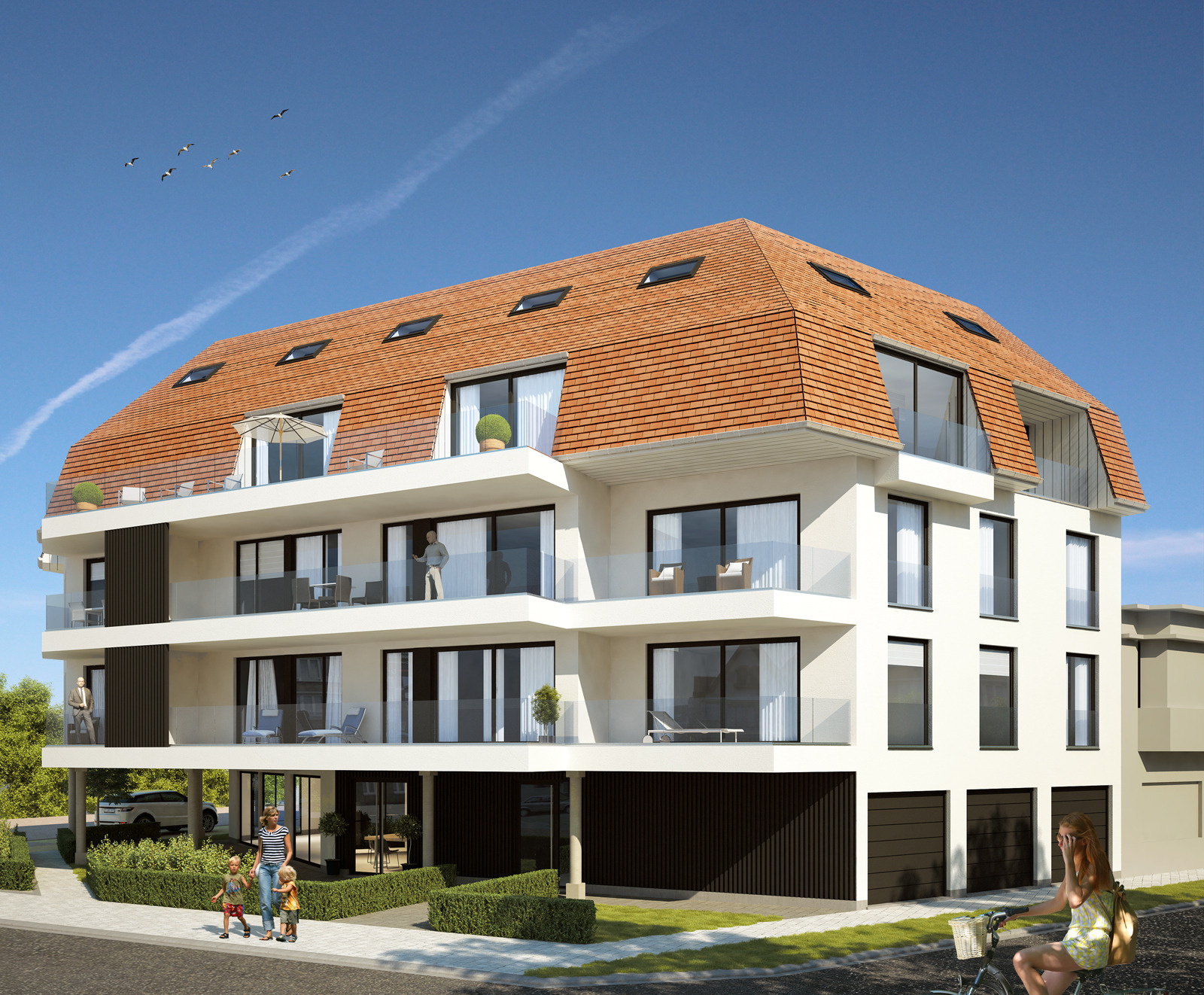 Op het eerste en tweede verdiep bevinden zich telkens vier ruime woonappartementen met twee slaapkamers, op de derde en vierde verdieping vijf ruime duplex penthouses met drie slaapkamers. De luxueuze afwerking van de appartementen is standaard inbegrepen, een hedendaagse keuken waarbij alle moderne toestellen zoals vaatwasser voorzien zijn. Een hippe badkamer met inloopdouche en een modern badkamermeubel.